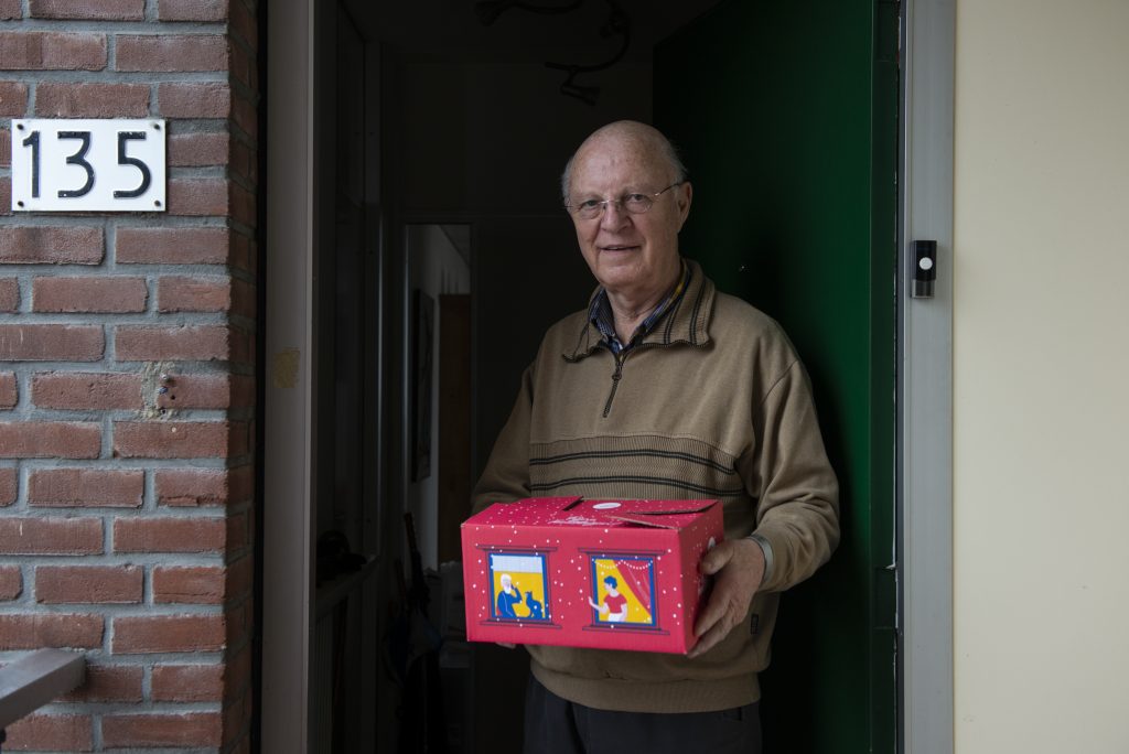 Dit jaar verrast het Ouderenfonds duizenden ouderen met een feestelijke kerstbox. Door samen met plaatselijke vrijwilligers de kerstboxen op een veilige manier te bezorgen realiseert het Ouderenfonds een ontmoeting op afstand en extra aandacht aan eenzame ouderen. Ook Jan heeft een kerstbox ontvangen. “Dat vind ik leuk. Een keer wat anders!”