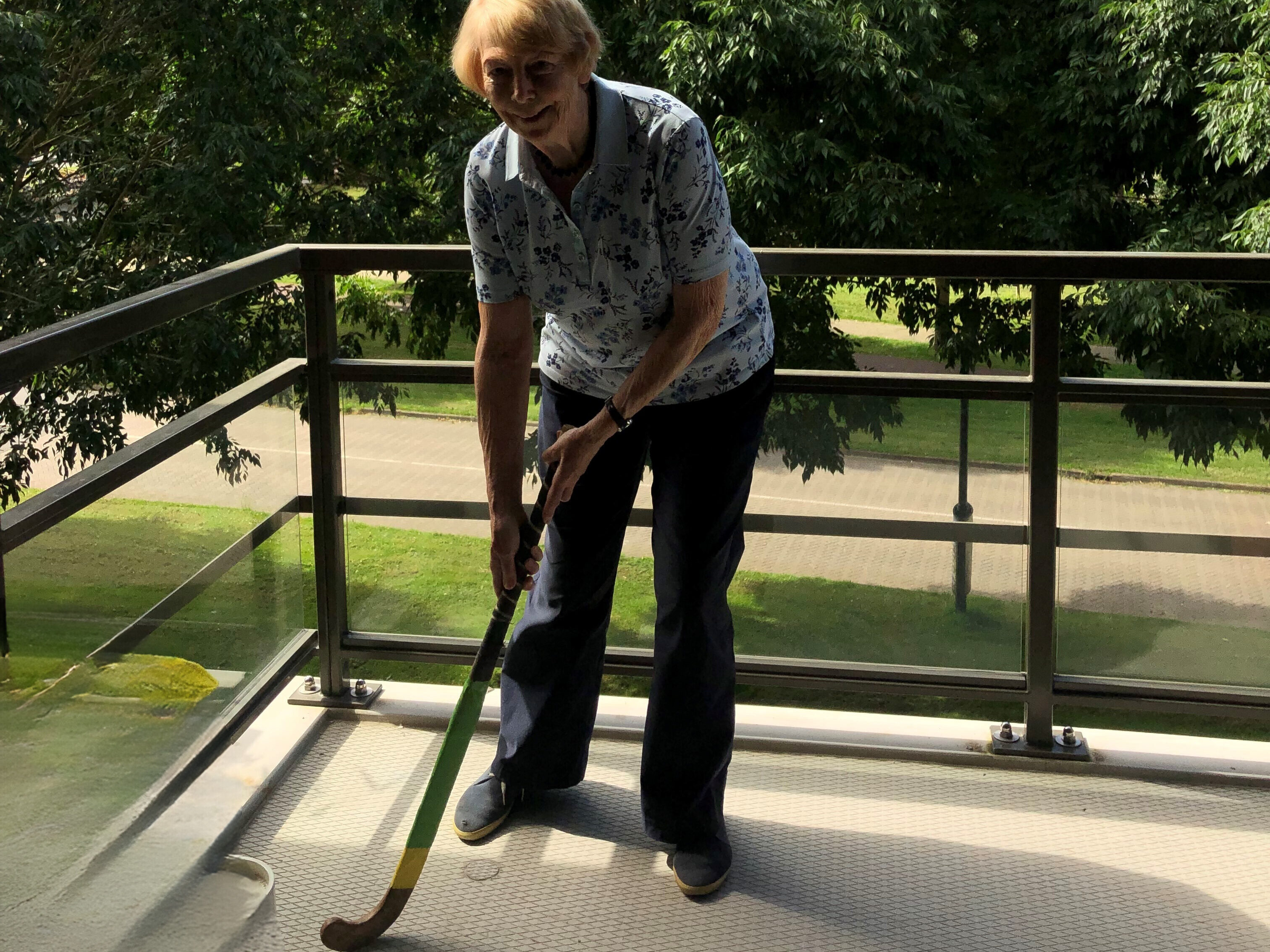 Janneke Bosschert (83) speelt OldStars hockey én is lid van het Ouderenpanel. “Het zit in mijn aard om altijd dingen te ondernemen en ik voel me geen oudere, maar ik ben het natuurlijk wel. Ik doe altijd vrolijk, maar realiseer me dat ik aan de laatste levensfase ben begonnen.”
