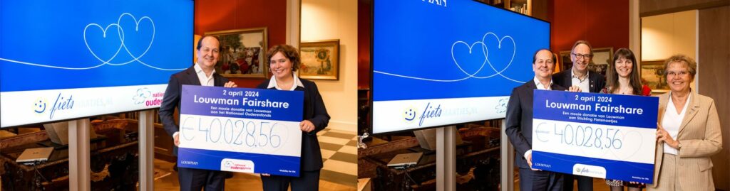 Met Fairshare zamelde Louwman, met klanten, collega’s en relaties, een jaar lang geld in en heeft elke donatie verdubbeld. Met de inzamelingsactie zijn het Nationaal Ouderenfonds en Fietsmaatjes.NL gesteund. Beide organisaties die zich met ziel en zaligheid inzetten voor mobiliteit en vrijheid van beweging voor iedereen, in het bijzonder voor ouderen en voor mensen die een beperking bij bewegen ervaren.