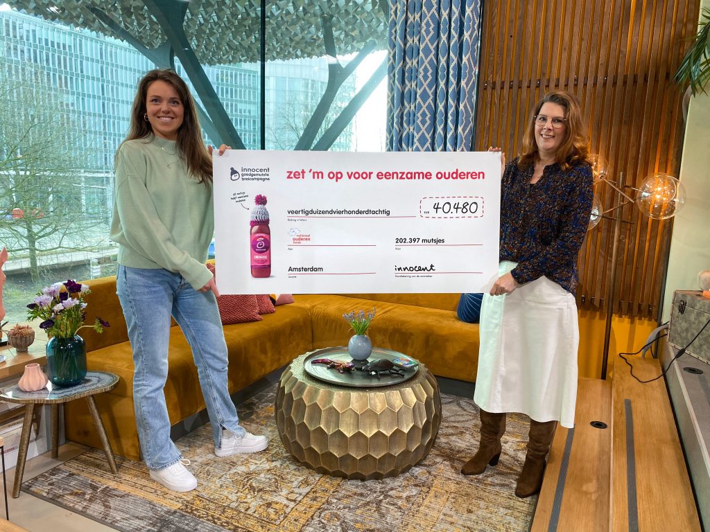 Samen met duizenden creatievelingen maken we elk jaar kleine mutsjes voor op de smoothies van innocent. Deze editie zijn de mutsjes van november 2019 tot 2020 gemaakt. In december 2020 lagen ze verspreid door heel Nederland in de winkels. Zo vragen we aandacht voor eenzaamheid onder ouderen én zamelen we geld in. Want van elke verkochte smoothie gaat er 20 cent naar het Ouderenfonds. Wij helpen ouderen op allerlei manieren en brengen ze met elkaar en anderen in contact. Bijvoorbeeld met de breiclubs van Samen Breien.