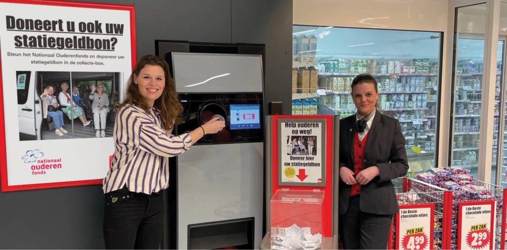 Tot en met 26 februari voeren alle filialen van Dirk van den Broek actie voor het Nationaal Ouderenfonds! De supermarktketen, met meer dan 1,6 miljoen klanten per week, zet zich middels deze grote statiegeldactie in voor ouderen. Klanten kunnen het Nationaal Ouderenfonds steunen door hun statiegeldbon te doneren. Bij het flesseninleverpunt staat in de actieperiode een donatiebox, hier kan de statiegeldbon gedoneerd worden.